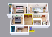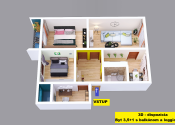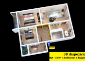Vo fotogalérii nájdtete 2D a 3D pôdorys bytu. Fotografie sú len orientačné a ukazujú vizualizácie možného budúceho stavu po prerobení bytu. V súčasnosti je byt v pôvodnom stave, pripravený na vašu rekonštrukciu. Aj jadro je pôvodné umakratové, aj okná sú pôvodné drevené. (okrem okna v kuchyni, to je plastové).