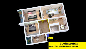 Byt má 3 izby nepriechodné a k tomu jednu menšiu izbu tiež nepriechodnú, navyše aj s loggiou. Táto môže slúžiť ako pracovňa, šatník, menšia detská izba....