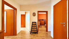Jeho výnimočnosť spočíva v tom, že bol pôvodne riešený ako dvojgeneračný byt – teda s nadštandardne priestrannou dispozíciou, dvomi WC (jedno prerobené na práčovňu) a množstvom úložného priestoru.
