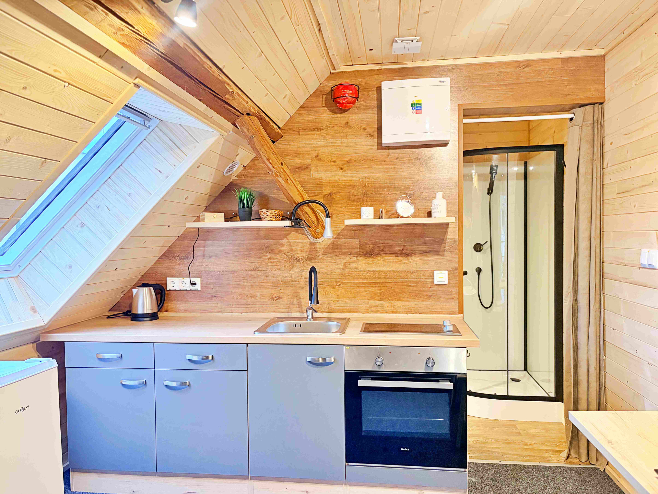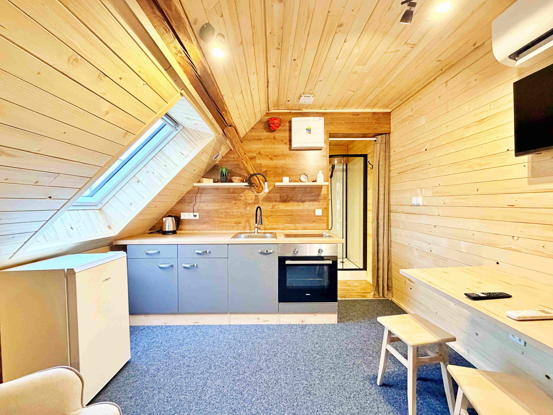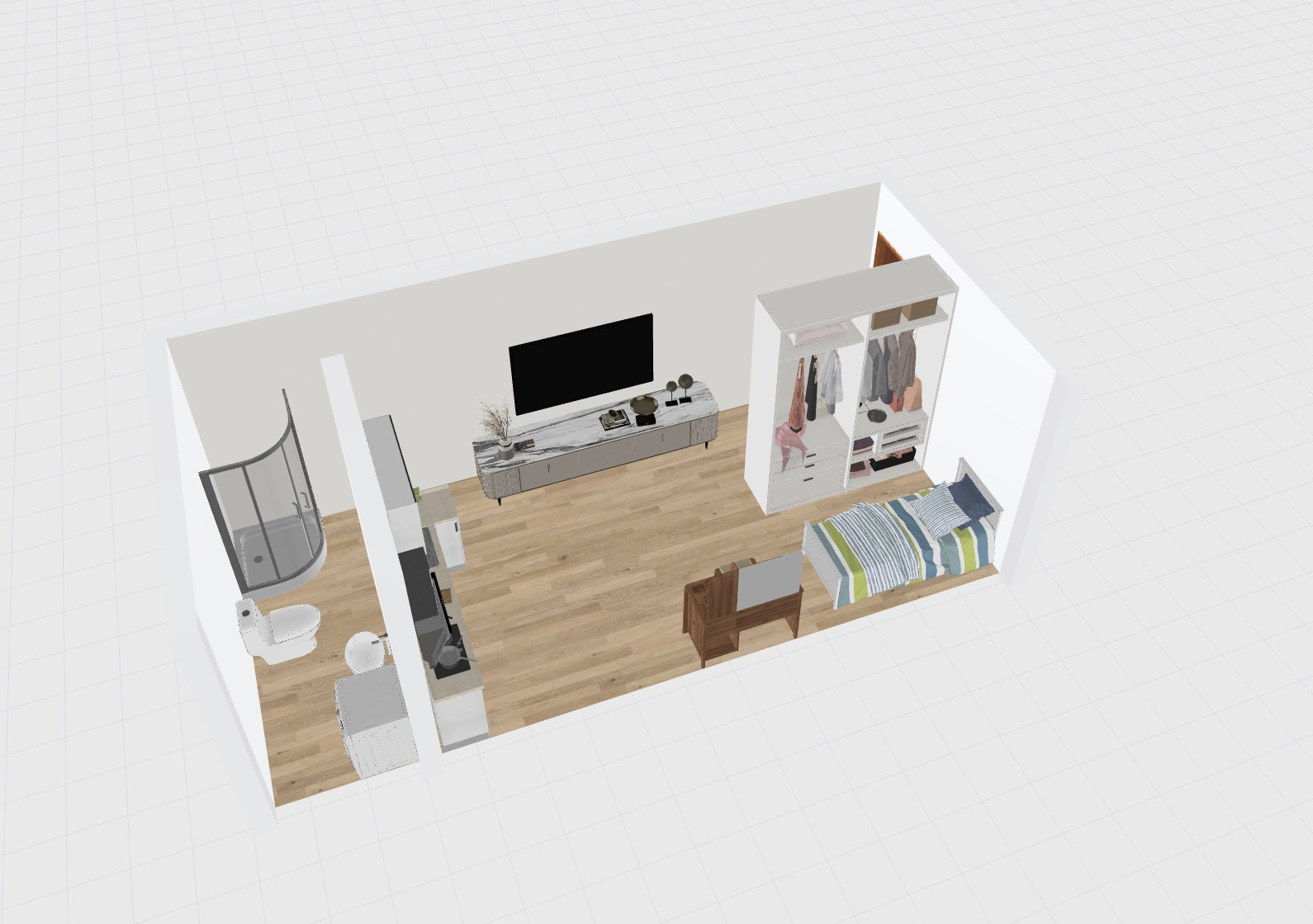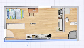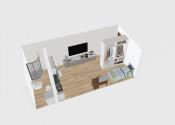 Garzónka sa nachádza na poschodí budovy a má výmeru 24 m² (cca 3,2 × 7,3 m). Priestor je navrhnutý tak, aby bol maximálne funkčný, vzdušný a komfortný. Všetko je úplne nové, nepoužívané.