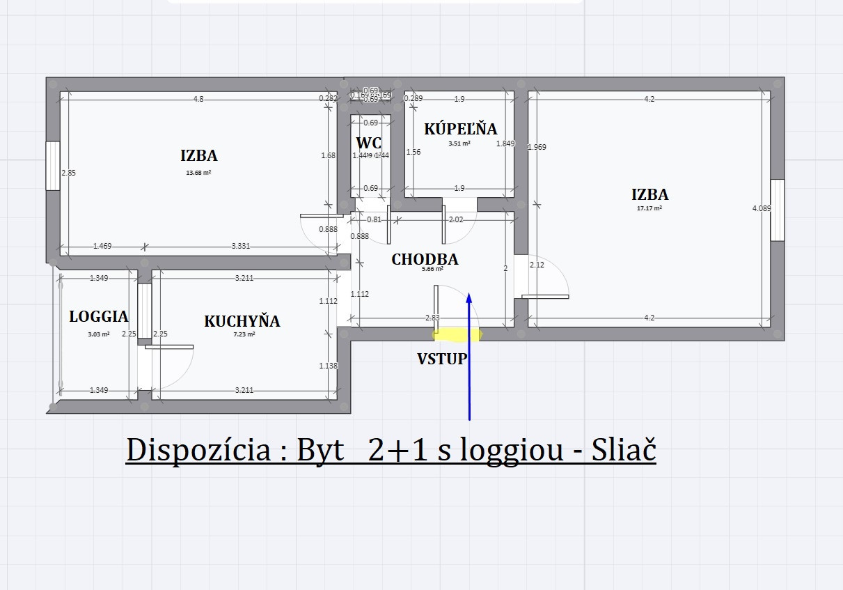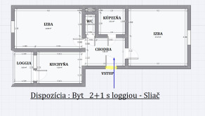 2 izby. 50 m². Loggia cca 8 m². Sliač – Rybárska.
