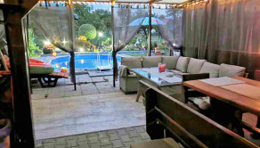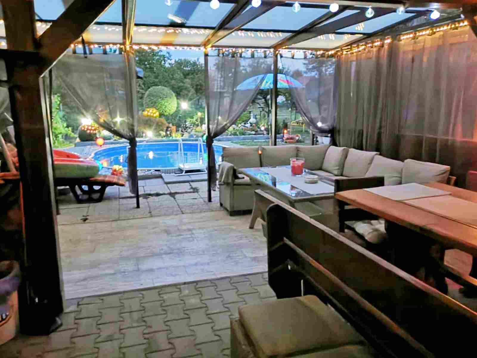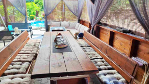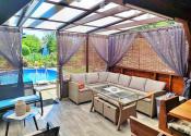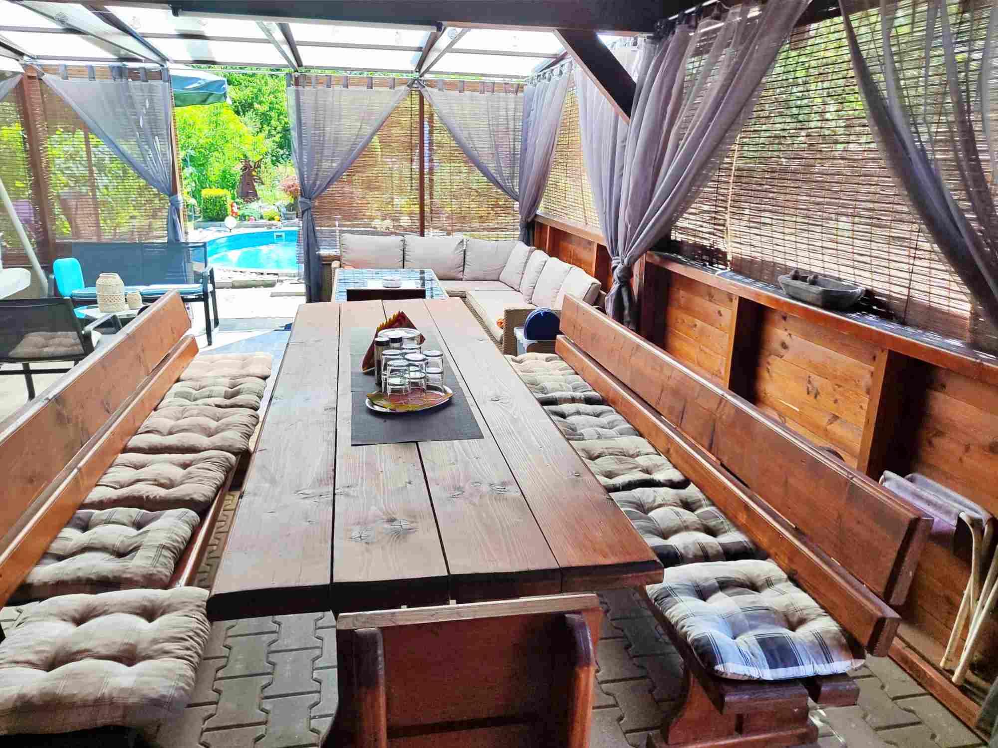 Altánok priamo pri bazéne vytvára ideálne miesto na letné posedenia, grilovanie a rodinné oslavy.
