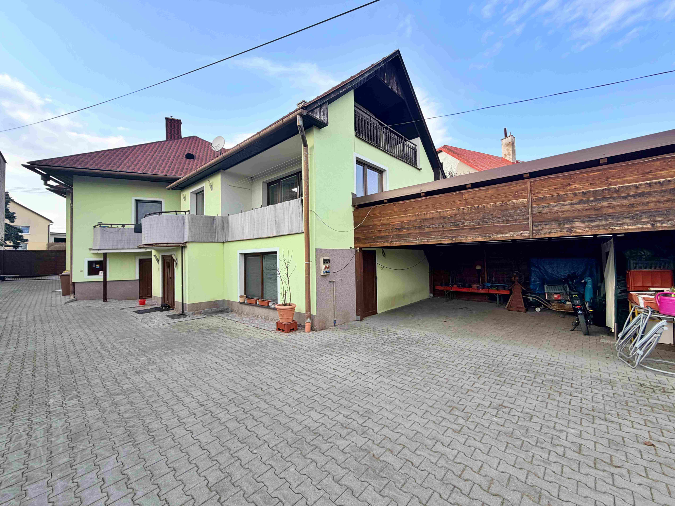 Dom ponúka komfortné parkovanie pre viac áut.
